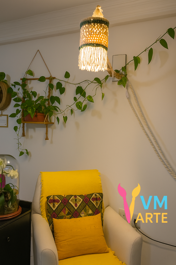 ABAJUR, MACRAMÊ, SALA, DECORAÇÃO, ILUMINAÇÃO