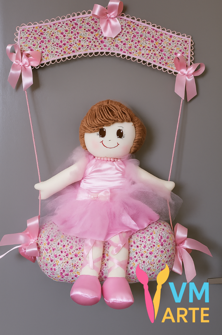 BONECA, BALANÇO, QUARTO, MENINA, INFANTIL, PRESENTE, DECORAÇÃO