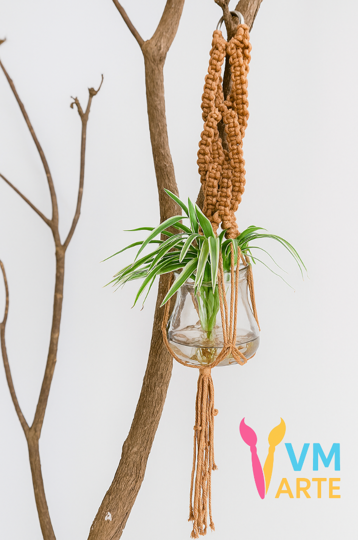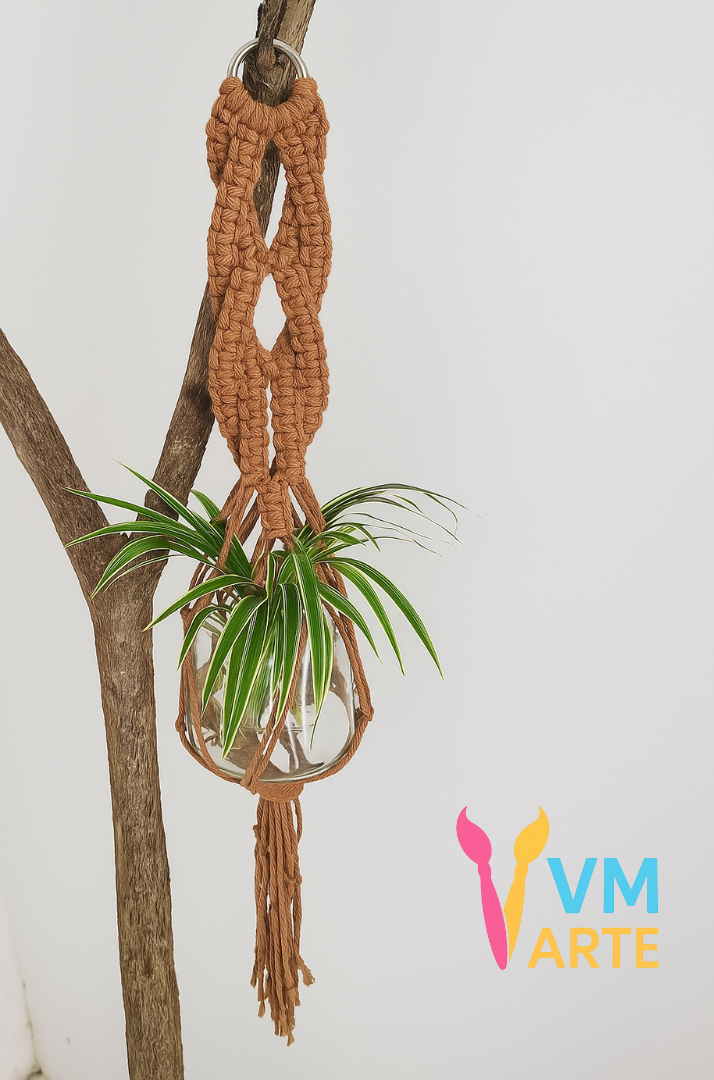 Suporte em Macramê para um pequeno jarro de planta.